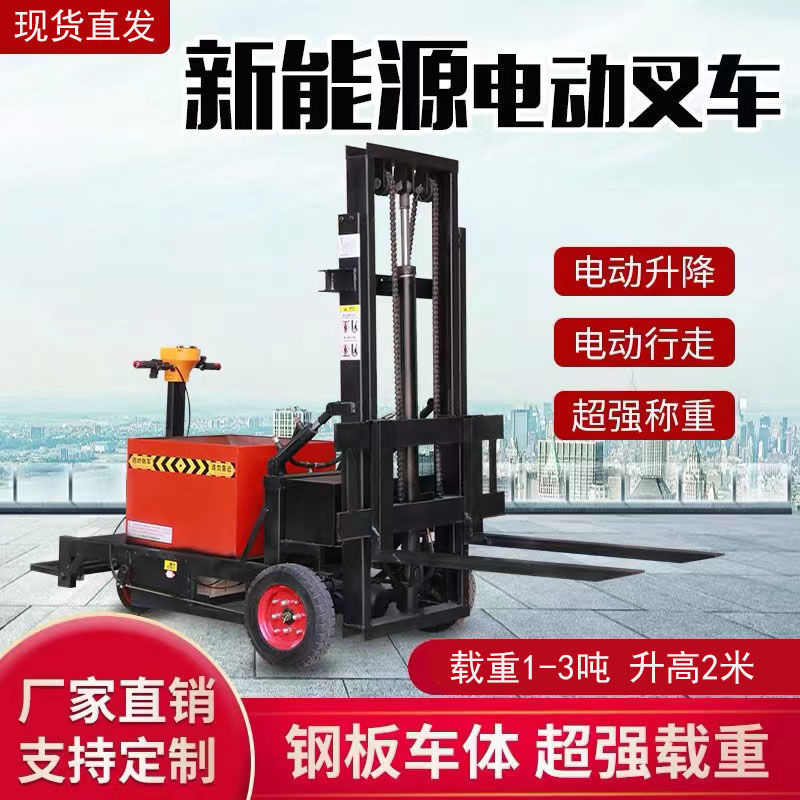 辛集市小型电动叉车1吨站驾式2吨液压升高铲车全自动仓储堆高车